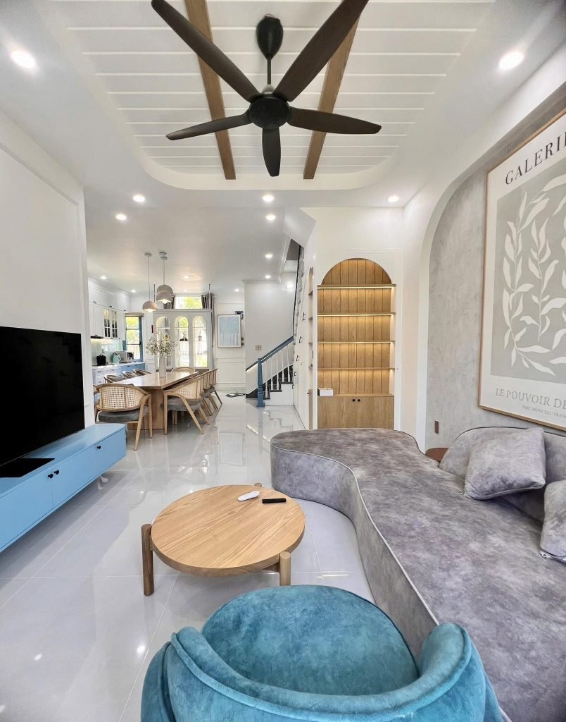 Villa này nổi bật với không gian mở rộng rãi, ngập tràn ánh sáng tự nhiên nhờ hệ cửa kính lớn và thiết kế thông thoáng. Mỗi góc nhỏ trong nhà đều toát lên vẻ hiện đại và tinh tế, mang lại cảm giác dễ chịu, thư thái cho gia chủ và khách đến chơi.